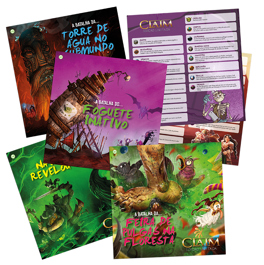 • A EDIÇÃO DEFINITIVA PARA AMANTES DO CLAIM! Claim Edição Limitada reúne todas as facções do Claim e Claim 2, mais 7 facções inéditas, novos cenários especiais e artes assinadas por vários artistas, tornando esta edição um verdadeiro item de coleção.
